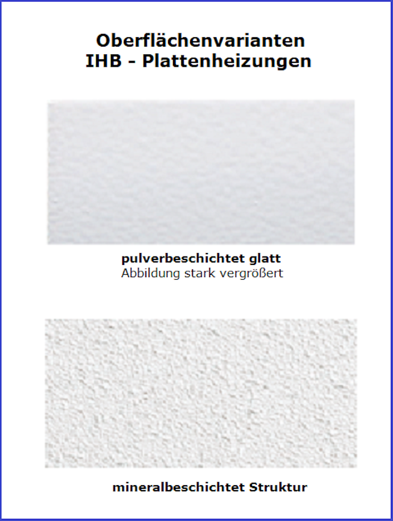 Die Infrarotheizungen „Ideal“ sind in zwei Oberflächenvarianten lieferbar, pulverbeschichtet glatt und mineralbeschichtet strukturiert.
